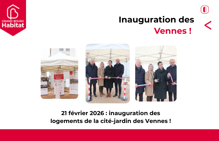 Samedi 21 février 2026, l’inauguration des Vennes s’est tenue de 10h30 à 12h30. Locataires et partenaires ont découvert les espaces rénovés aux côtés de Michel Ménard, de Isabelle Maistre, Présidente de Grand Bourg Habitat, et de Th...