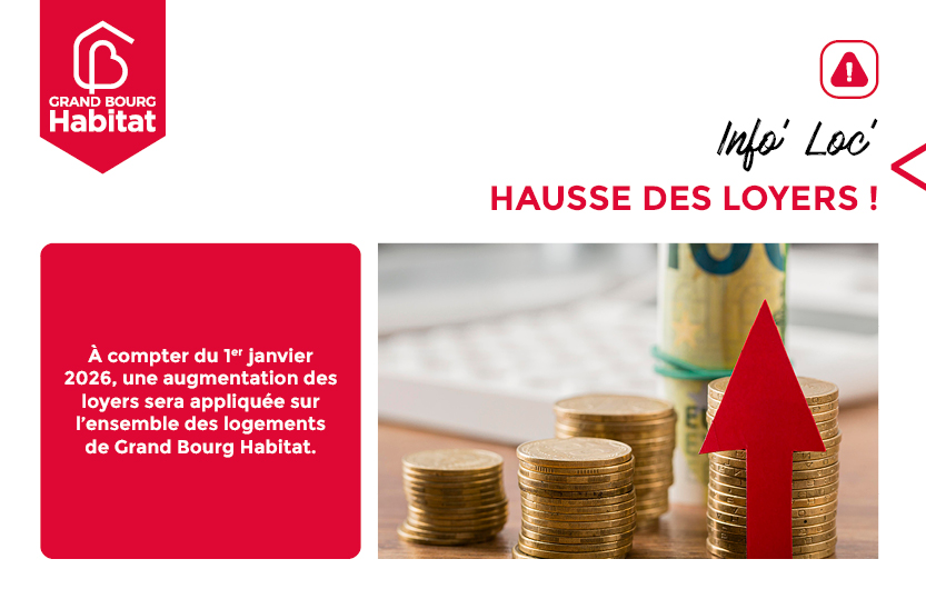 À compter du 1er janvier 2026, une augmentation des loyers sera appliquée sur l'ensemble des logements de Grand Bourg Habitat. Cette augmentation, d'un taux de 1,04%, est conforme à la réglementation en vigueur et repose sur l’évolution de l’Indice de Référence des Loyers (IRL), tel que défini par l'INSEE.