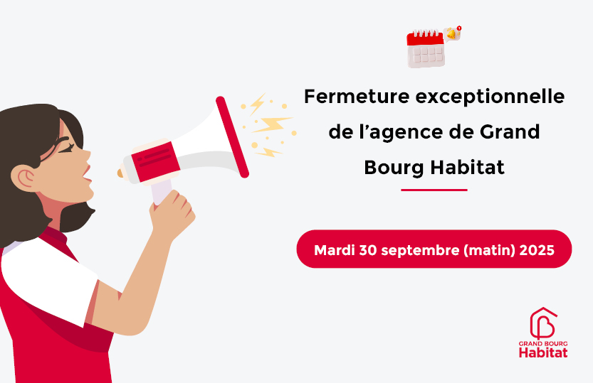 L’agence de Grand Bourg Habitat sera fermée le mardi 30 septembre (matin) 2025.